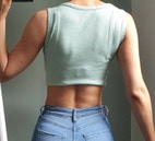 T-shirt, ., str. 34, mintgrøn, Næsten som ny, Mintgrøn lyse grøn crop top bluse med lille v-neck