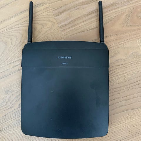 Linksys router. Enheden er beregnet til oprettelse og deling af netværksforbindelse i hjem eller mindre kontorer. Velegnet som central enhed i et trådløst eller kablet netværk afhængigt af model