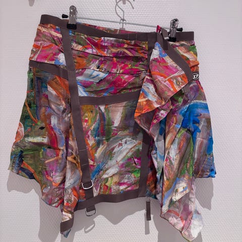 Fuldstændig sindssyg nederdel fra diesel. See trough / mesh effekt og “cykelshorts”/leggings indenunder. Vovede at købe den i xs, men kan ikke passe den