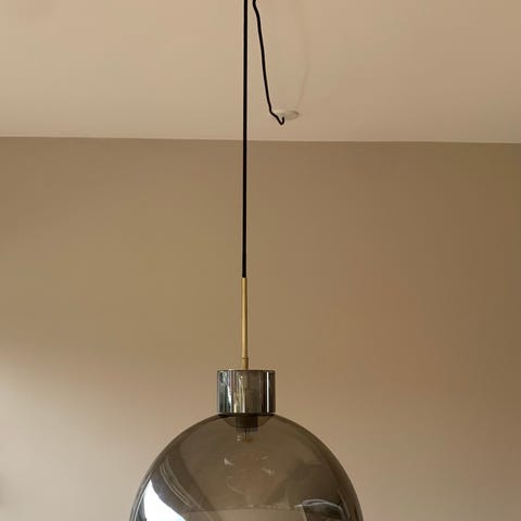 Lamperne kombinerer sort metal med klart/røgtonet glas og giver et varmt, behageligt lys – perfekte over spisebord eller køkkenø. De hænger flot samlet og skaber et eksklusivt, sammenhængende udtryk i rummet.