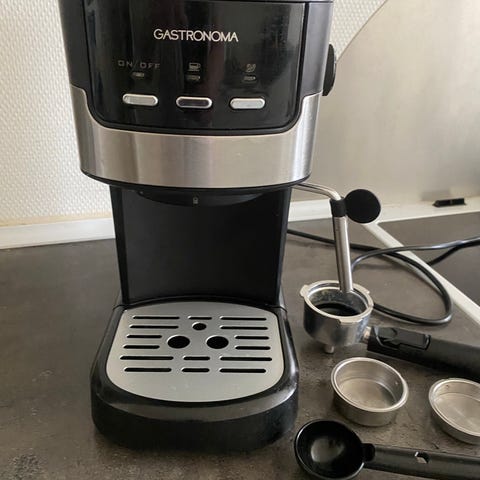 Gastronoma espressomaskine købt i Imerco. Den er købt for omkring 6 måneder siden, men den blevet brugt med flittigt og med ikke-filteret vand. Den sælges derfor billigt. Den koster 1199,95 fra ny.
