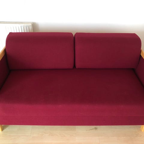 Længden er 2,20. Siddedybden ca 56. (Inklusiv rygpuder 76) Siddehøjde 38.