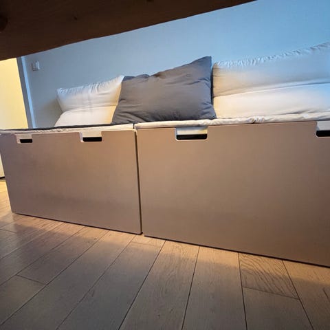 Rigtig fin bænk med gråt betræk og opbevaring fra Ikea. God til opbevaring af sengetøj eller legetøj eller fx til entréen. Fremstår i nydelig stand. Betrækket kan udskiftes eller tages af og vaskes. Den er godt polstret og meget behagelig at sidde på. Mål: L: 145 cm, H: 44 cm, B: 50 cm. Kostede i omegnen af kr. 3000 fra ny.