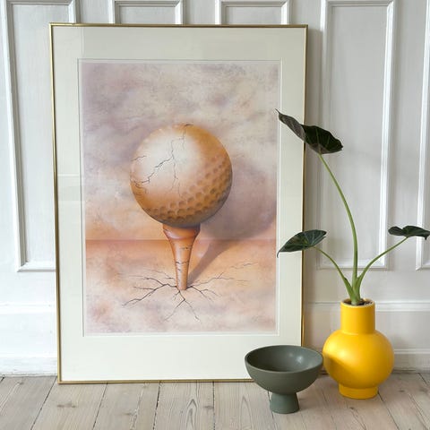 Flemming Stensballe plakat med farverigt grafisk motiv. “ land of the eagle”. Motivet består af et centralt felt med fugle- og bjerglignende former omgivet af felter i blandt andet lilla, orange, gul og rosa nuancer samt sort-hvide zebrastriber. Nederst på plakaten står kunstnerens navn trykt, signatur samt tryk nummer( 35/200). Plakaten er indrammet i en enkel metalramme med glas, som på billedet ses med et mindre afslag i rammekanten. Prisen er kun for trykket. Rammen kan følge med gratis.Velegnet som vægdekoration i stue, gang eller kontor.