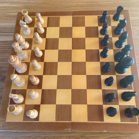Skaksæt træ skakbræt med brikker