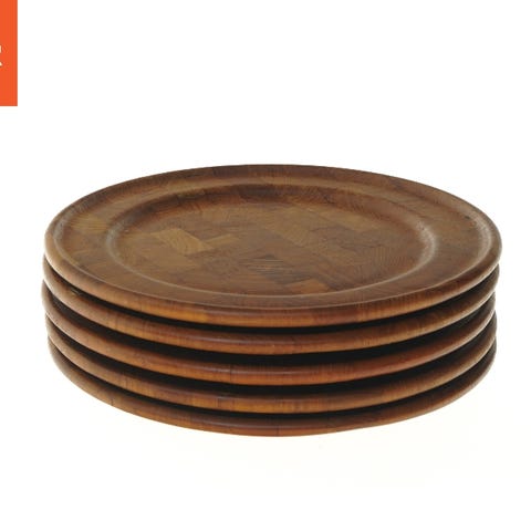 Sæt af 6 teaktræ tallerkener fra digsmed (str. Ø 28 cm)