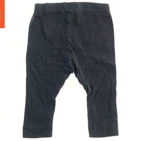 Børnebukser i en lys grå farve med elastisk talje. Bukserne har to knapper foran som dekorative elementer og er lavet af et blødt materiale. Der er ingen lommer.