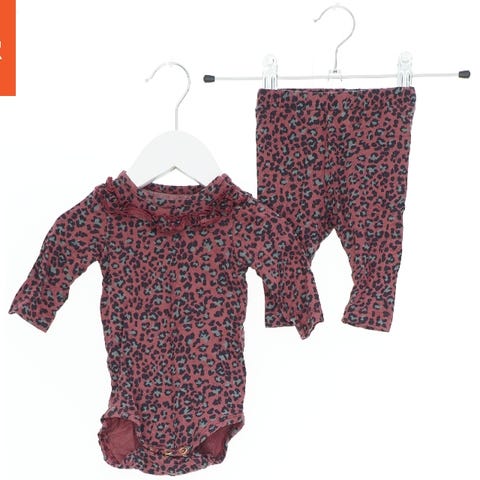 Et babysæt bestående af en bodystocking og leggings. Begge dele er mørkeblå med et mønster af farverige prikker i orange, lilla og beige. Bodystockingen har lange ærmer og trykknapper forneden. Leggingsene har en elastisk talje.