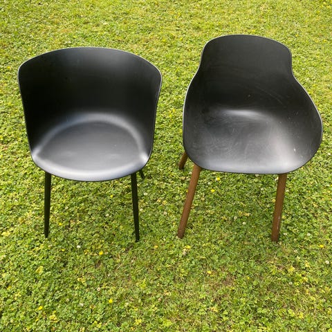 Sælger 4 flotte stole i sort træ med grå stålben. Stilrent design og i pæn stand.