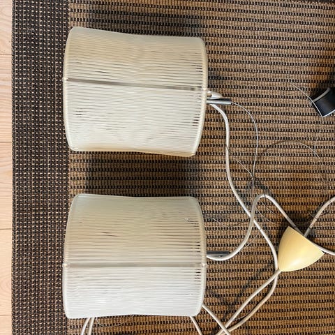 Den er i fin stand uden skader dog er ledningen lidt kort og skal skiftes hvis den skal hænge langt ned fra loftet