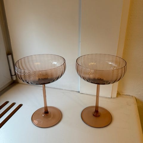 Anna Von Lipa Swirl håndlavet 6 glas og kande, lyserød, samlet pris, NYT