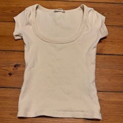 Gennemsigtig t-shirt i støvet dueblå str. L (vil jeg tro) Ingen mærker