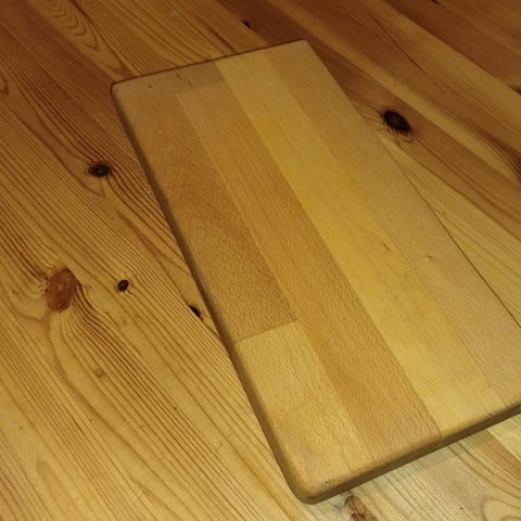 Spækbræt, Teaktræ finer spækbræt med klovn. Der mangler et stykke finer for neden. 47,5 x 13,5 cm
