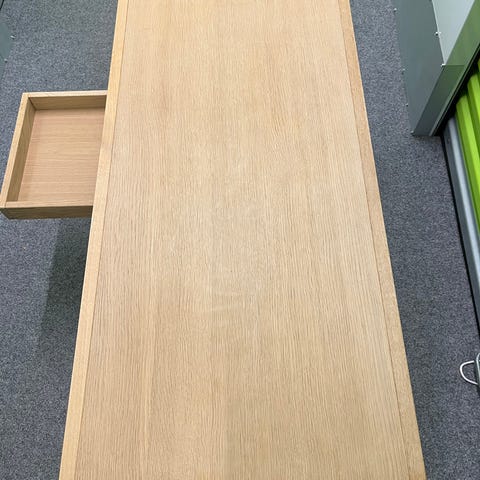 Der er en meget let nuanceforskel i træet efter bøger, som naturligt vil udligne sig over tid med dagslys – det er helt normalt for træ og fremstår diskret.