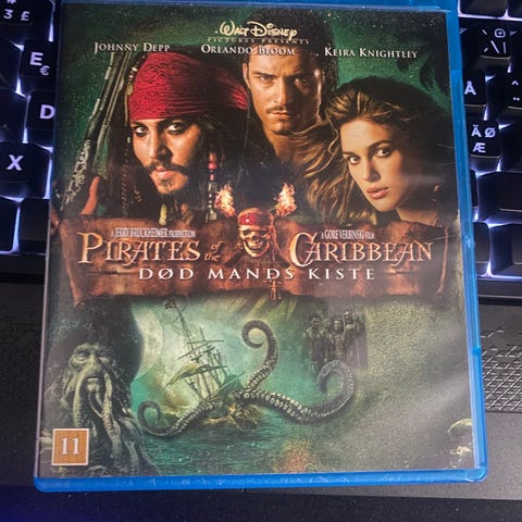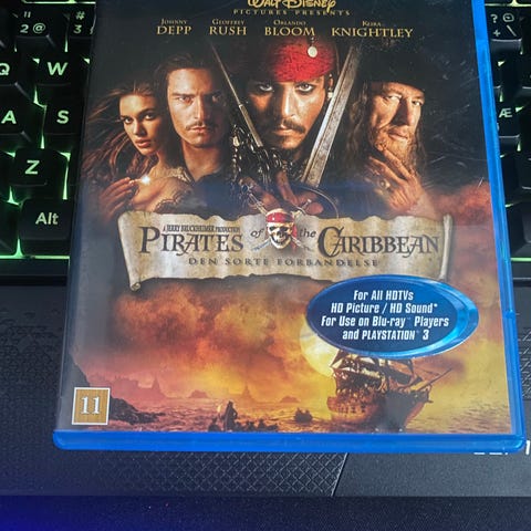 Disney Pirates of the Caribbean Ved verdens ende Blu-ray film. Udgivelse på Blu-ray med filmen "Pirates of the Caribbean: Ved verdens ende". Cover og disk med originalt filmomslag. Egnet til afspilning på Blu-ray-afspillere. Aldersmærkning 11 år.