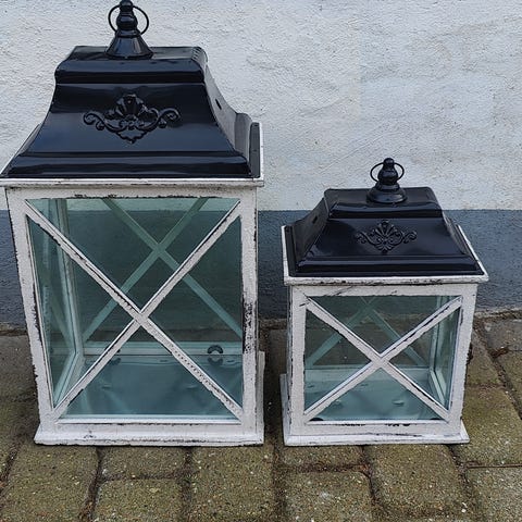 De har glas i siderne. Kan bruges stående eller hængende. Sælges gerne samlet.