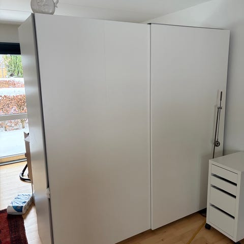 Sælger et garderobeskab identisk til den samlede version på billedet (det er altså det usamlede som sælges, og derfor er noget nemmere at have med at gøre når det skal hentes). Havde ikke brug for skab nr. 2, så derfor må det sælges.
