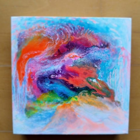 Lille maleri, 20x20 cm. Dybde: 4 cm. Akryl på lærred.