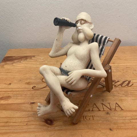 Flot lille gammel figur cirka 1930´er af Don Quijote efter han angreb vindmøllen og faldt af hesten.
