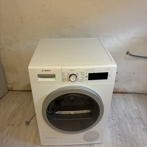 Bosch kondens tørretumbler i hvid med varmepumpeteknologi, 8 kg kapacitet og selvrensende kondenser. Energiklasse +++