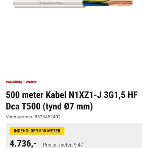 Installationskabel 5G2,5 fra Waskönig & Walter i hvid farve. Der burde være min. 30m, men har ikke målt efter.