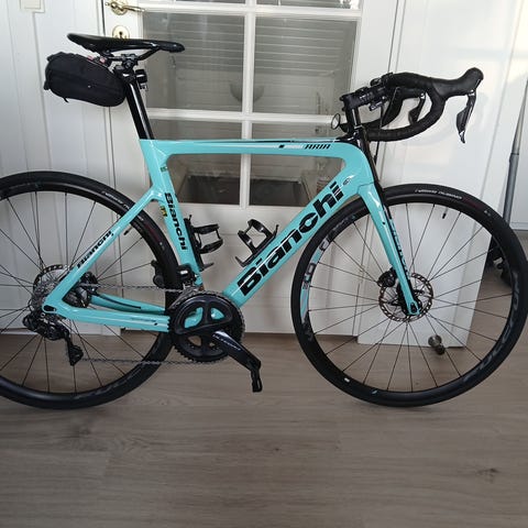Bianchi Infinito XE str 50. Der er kvittering og 2 år garanti på den. Den er sprit ny og har ikke rullet en meter. Sram Rival Etap AXS 24 gear gruppe og bremser. Det er en endurace cykel med lidt mere komfort på de lange ture. Jeg vil mene størrelsen passer fra 165 til 173. Cyklens nypris er 35500. Bontrager Xxx (15g) flaskeholder kan evt følge med. Hjulene er tubeles ready, men sat op med slange nu.