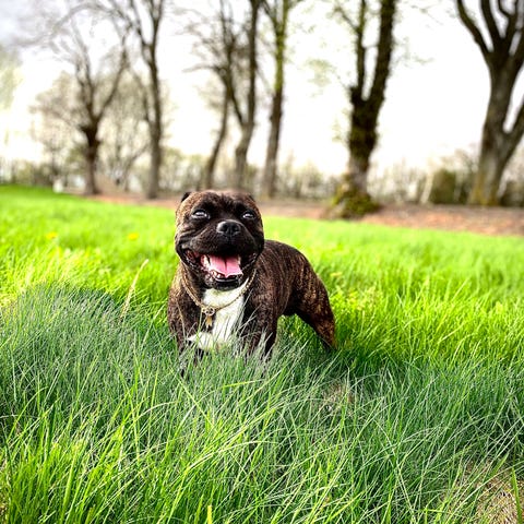 Det er med grædende hjerte at jeg må sælge min ægte sterffordshire bull terrier på 8 måneder en rigtig følgesvend som følger en lige meget hvor man går hen af han er 100 % renlig og han er sund og rask han kan med både børn i alle aldre og med andre hunde han elsker at være ude at gå og han elsker at spille fodboldt men han elsker også at putte både på sofaen og i sengen han er chippet og vaccinereten mangler dog en han er reg i dansk hunderegister og der er sundhedsbog og stamtavle med til ham så søger du en ven for resten af livets så er han måske noget for dig så skriv endelig til mig på 31479929 han sælges pga sygdom