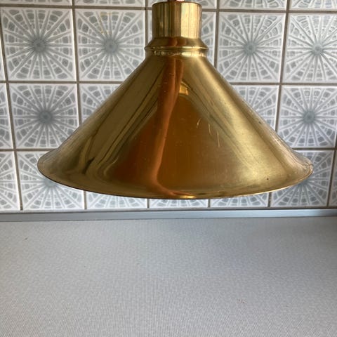 Flot lampe med 4 pendeller i kobber/messing sælges i forbindelse med hussalg/flytning. De enkelte pendeller kan individuelt justeres i længden.