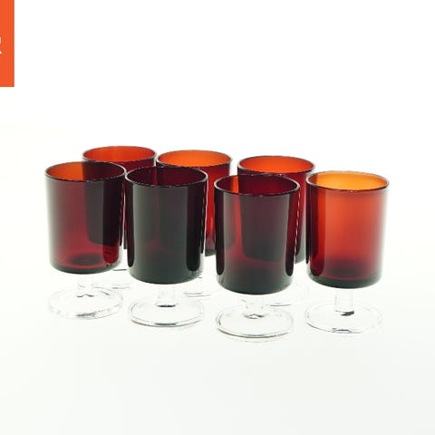 Vintage Arcoroc French Brandy & Cognac Glasses, Ruby Red, Set Of 5