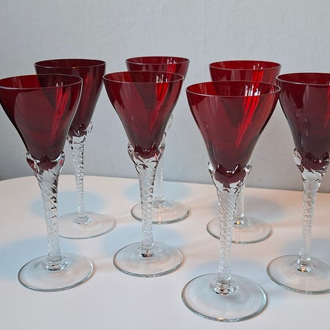 5 Røde glas med stilk RUBY RED (str. 5 stk Ø 5,5 cm længde 9 cm)
