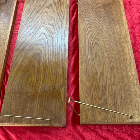 Træhyldesæt bestående af 13 stykker, hver med en længde på 38,5 cm. Hylderne er lavet af træ og er designet til montering på en væg. De er endnu i emballagen, hvilket indikerer at de ikke er blevet brugt. Designet synes at være simpelt og minimalistisk, med en naturlig træfinish. Perfekte til brug i stuen, soveværelset, eller køkkenet til opbevaring og udstilling af genstande. ny.pris pr stk 200kr