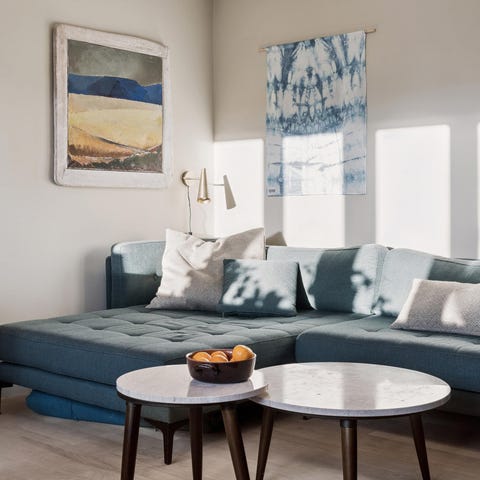 Lækker velour U-sofa i den skønneste mørkeblå farve