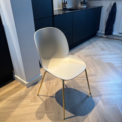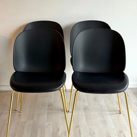 GUBI, stol, Beetle, Fuldpolstret i mokka læder med sort gjord og sorte ben. Fremtræder fejlfrie og har haft dem fra ny. Kan evt leveres.