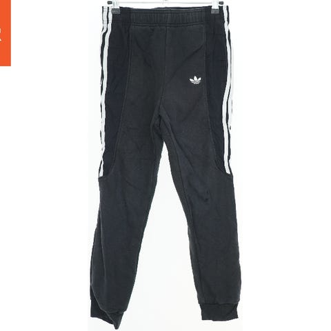 Disse sorte træningsbukser fra Adidas har en elastisk talje og hvide striber langs siderne. Der er et Adidas logo på forsiden. Bukserne har en behagelig pasform velegnet til sport og fritidsaktiviteter.