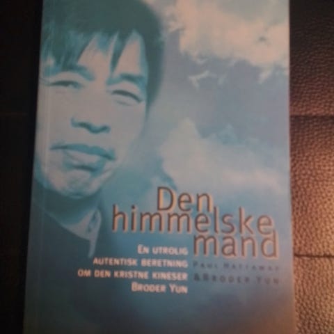 "Den himmelske mand" bog i hardback-udgave. Bogen er en autentisk beretning om den kristne kineser Broder Yun og beskriver hans liv, tro og oplevelser i Kina. Teksten er på dansk, og udgivelsen er i hardback med illustreret omslag.