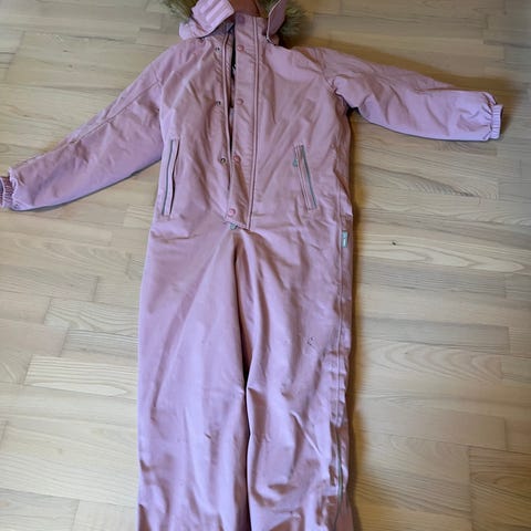 NY grå flyverdragt med hætte. Dragten har en pelskant på hætten og ribkant ved ærmerne samt benene for bedre pasform. Der er reflekterende detaljer på dragten, og den har funktionelle lommer på forsiden. Dragten er velegnet til kolde temperaturer og har en mærkat fra Reima.