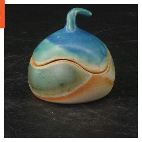 Denne lille keramiske skål har en diameter på 7 cm og er sort. Den er rund i form og har en glat overflade. Bunden er markeret med initialerne 'KS'. Skålen kan bruges som dekorativt objekt eller som en holder til små genstande.