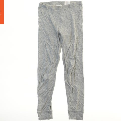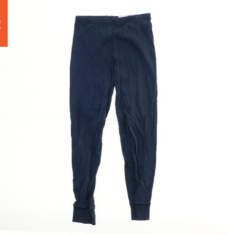 Et par mørkeblå lange underbukser til børn med elastik i taljen. De har en enkel og behagelig stil, velegnet til at holde varmen.
