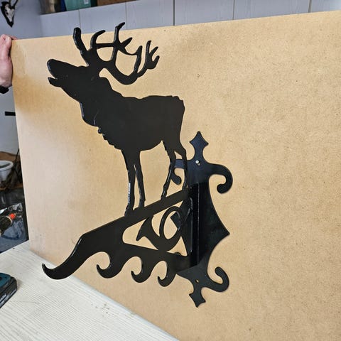 Vildtkrog 60x33 - med jæger og hund. På de 2 sidekroge er kronhjorte