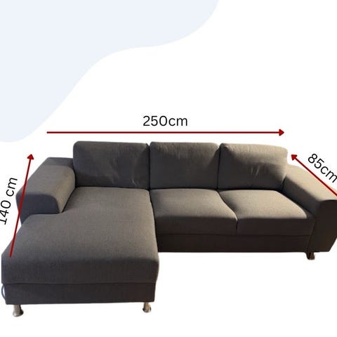 Gråmeleret Raun sofa. Den er brugt, men ingen huller, pletter eller svært slid.