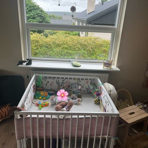 Fin kravlegård fra BabyDan inkl original madras. Der er brugsspor, men fungerer upåklageligt. Bunden kan indstilles i to højder.