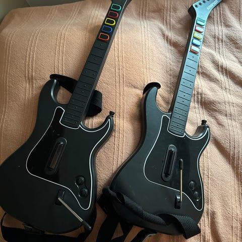 Guitar Hero guitarcontroller til PlayStation4. Trådløs plastguitar i sort med gule detaljer og justerbar skulderrem. Egnet til musik- og rytmespil, hvor controlleren bruges til at styre spillet som en guitar. Leveres sammen med et PlayStation-spil som vist på billedet.