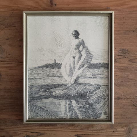 Dette er et gentryk, trykt på 200g syrefrit specialpapir, og sat i en smuk gammel guldramme, med sjæl og patina, renset og med ny bagbeklædning