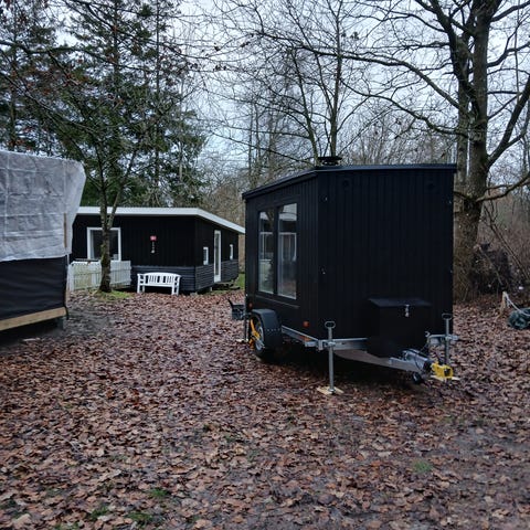 Sauna tønde på trailer med brændefyring