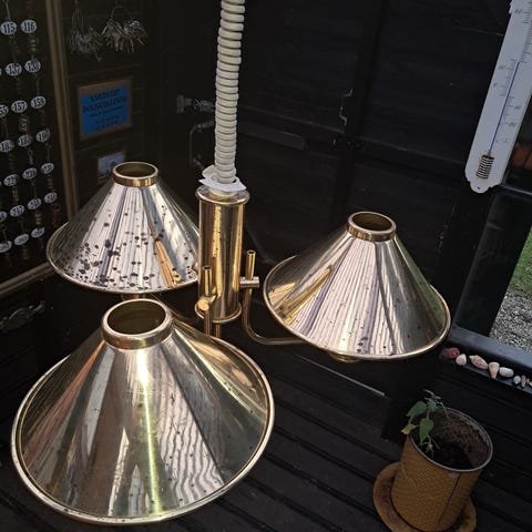 Sælges pga flytning. Den midterste pære kan tændes og slukkes separat da vi har brugt den mest som hyggebelysning og kun benyttet gammeldags kultrådspærer. Pærerne følger ikke med.