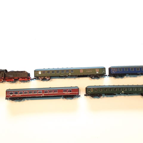 Lokomotivet af mærket Arnold Rapido. Det er i rigtig fin stand, og lidt af en kraftkarl. Det har lys for og bag. Minitrixvogne er som nye.