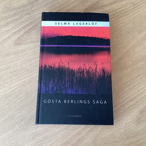 Selma Lagerlöf Gösta Berlings saga bog. Indbundet udgave med ryg og hjørner i mørkt materiale og marmorerede plancer. Dansk udgave udgivet i København 1956 af Gyldendalske Boghandel Nordisk Forlag. Skønlitterær roman trykt med titelside i sort og rød skrift.
