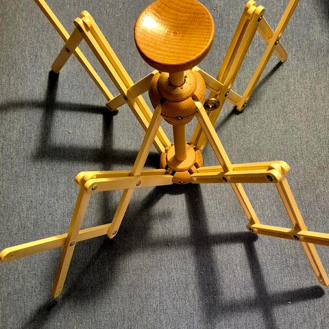 Garnvinde i bøgetræ med manuel betjening. Enheden består af en base med roterende tromle og garnholder samt elastikrem til rotation. Medfølgende metalbordklemme gør det muligt at fastgøre garnvinderen til bordkant under brug. Der følger en enkel brugsvejledning med illustrationer af opsætning og anvendelse. Velegnet til oprulning af garnnøgler ved strik og hækling.