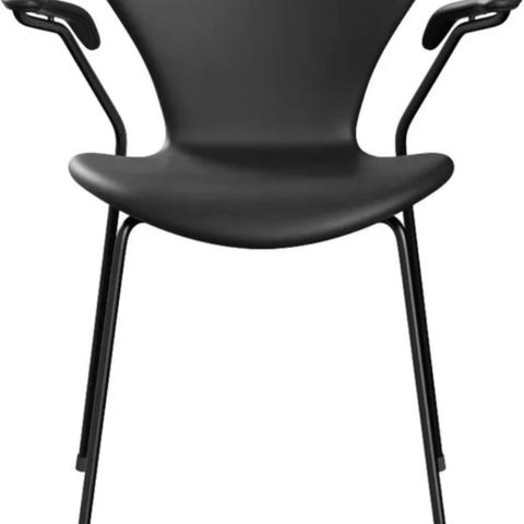 4.stk Syverstole i sort læder med armlæn. En af stolene med sælskind bagpå… Står i virkelig god stand .