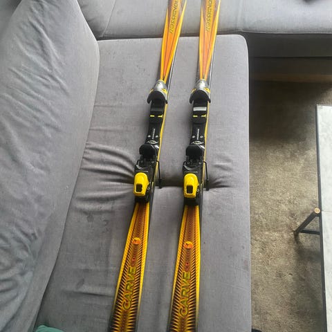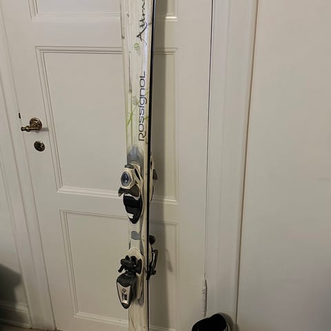 Rossignol carve ski med Rossignol bindinger i brun farve. Alpinski med integrerede justerbare bindinger, egnet til pistkørsel. Undersiden fremstår med sort belag. Velegnet til brug på almindelige alpinanlæg. Sælges som komplet sæt med ski og monterede bindinger.
